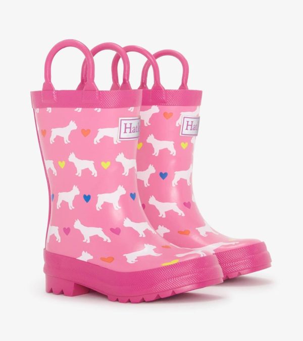 Add puppy love to her rainy-day outfit with the Toddler Girls French Bulldogs Rain Boots! These adorable rubber boots feature a cute French Bulldog design, perfect for keeping little feet dry and stylish.