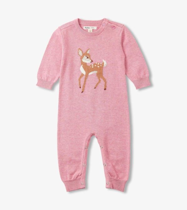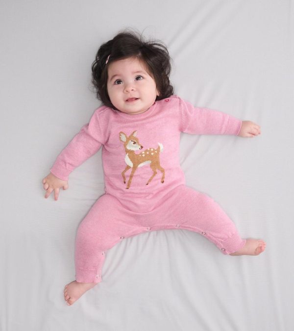 Your baby girl will look sweeter than sugar in the Baby Girls Baby Doe Sweater Romper. Made of soft organic cotton, this romper features a precious doe design that the little nature lover will love. Cozy, cute, and comfortable this romper is perfect for fall.