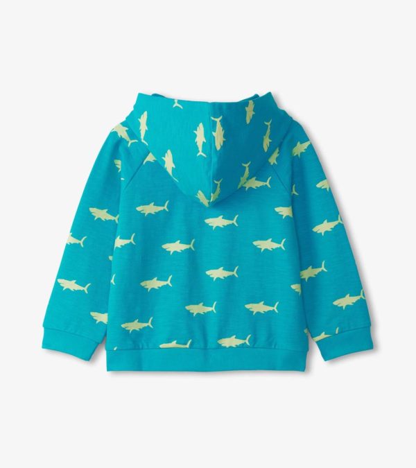 Cool nights call for our Baby & Toddler Boys Shark Silhouette Glow Zip-Up Hoodie. The cozy cotton is complemented by a glowing shark silhouette that lights up the imagination and the night. It’s the perfect hoodie for little adventurers who love to shine, even when the sun goes down.