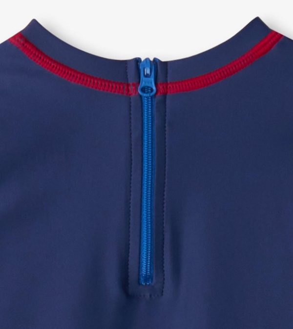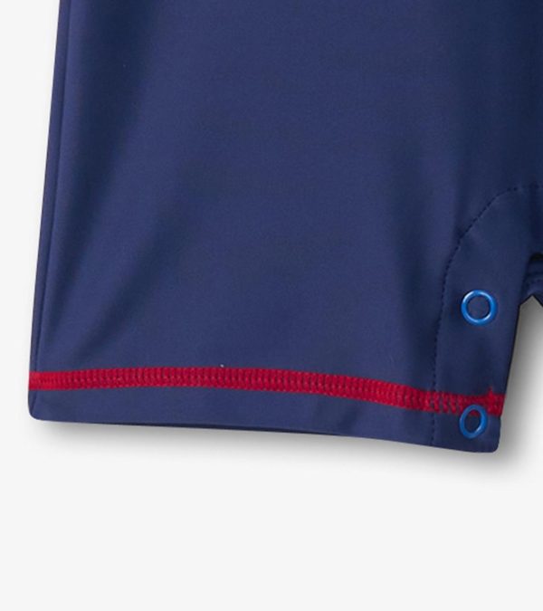 Anchor down a look of adventure with our Baby Boys Nautical Anchor One-Piece Rashguard. The nylon and spandex material is designed to protect your little one from the sun, making it a seaworthy suit for your little captain’s first voyage.