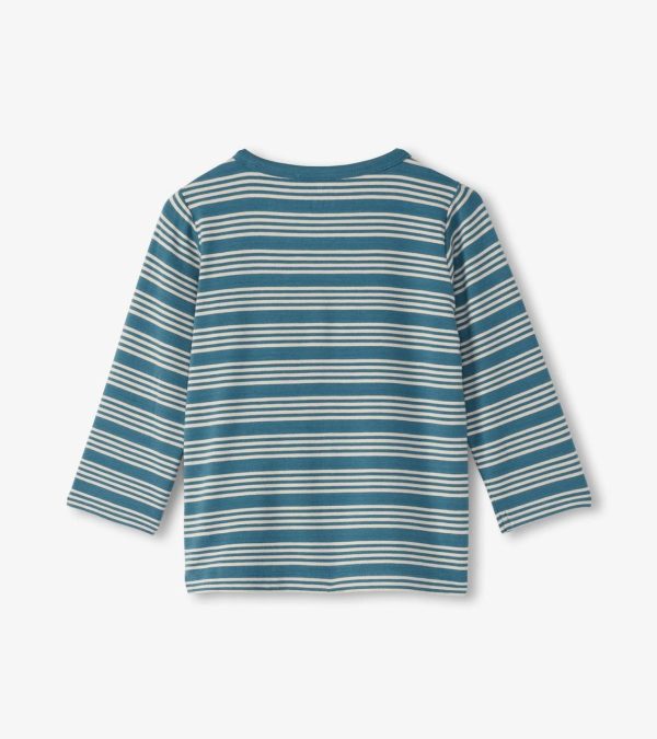 Keep him stylish with the Baby & Toddler Boys Bluestone Stripes Long Sleeve Bamboo T-Shirt! This cozy tee features a classic stripe design in soothing bluestone hues and is made from soft bamboo fabric. Perfect for everyday wear.