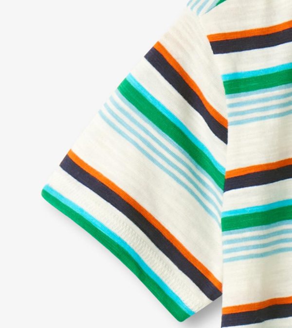 Adventure is calling with our Baby & Toddler Boys Hiking Stripes Polo Shirt. Crafted from pure cotton, this shirt combines classic stripes with a rugged polo style, ready for your little one’s next big expedition. Whether it’s a family hike or playground exploring, this shirt is a trailblazer.