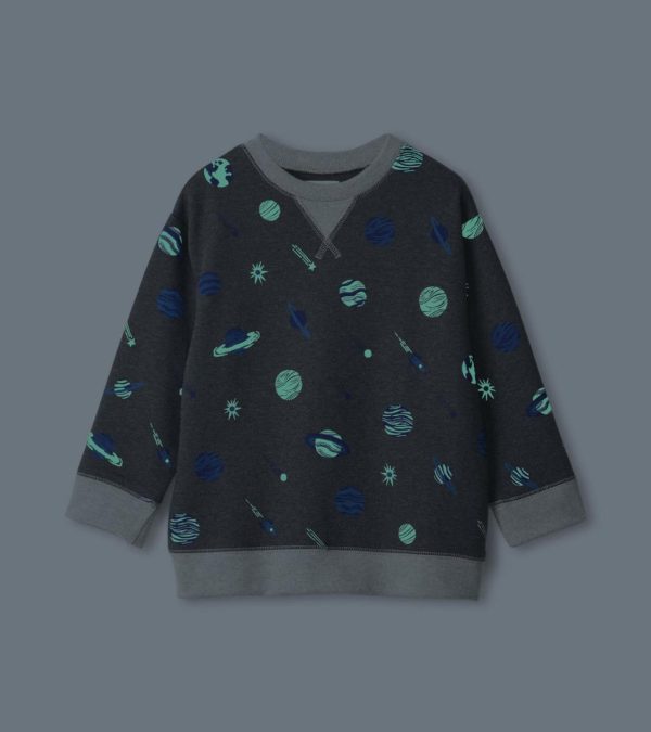 Your little astronaut will love this cozy space explorer pullover that glows in the dark! Warm, soft, and cozy, it is the perfect sweater for all their daily escapades.
