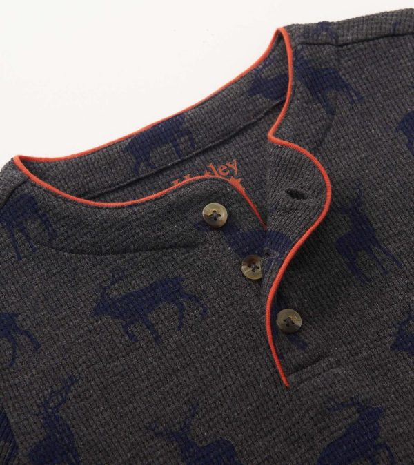 Keep it cool and comfy with the Boys Blue Elks Long Sleeve Henley T-Shirt! This versatile shirt combines a classic Henley style with a fun elk print. Made from a blend of cotton and polyester, it’s soft, durable, and perfect for everyday adventures.