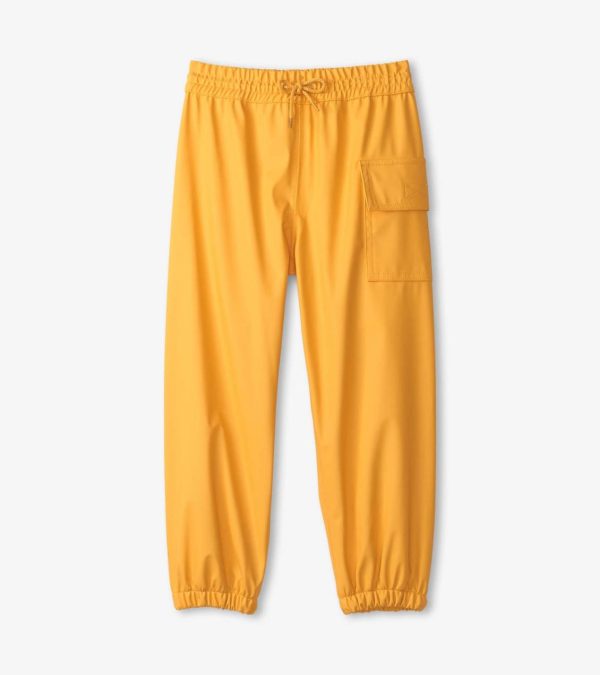 These waterproof yellow splash pants are essential for ultimate rainy-day protection and comfort! Made from PVC-Free material, they will keep your little one dry in wet conditions while the durable construction offers long-lasting wear.