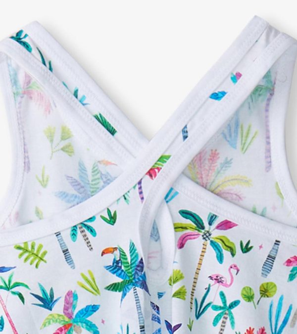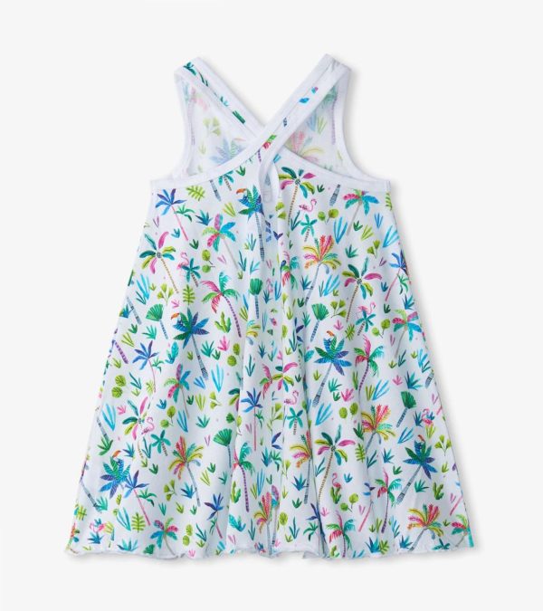Add a burst of colour to your little one’s wardrobe with our Girls Rainbow Palms Trapeze Dress. Pure cotton breeziness meets a burst of tropical print, making this dress a playful pick for any mini fashionista. It’s a swingy, comfortable choice for twirling at parties or exploring paradise.