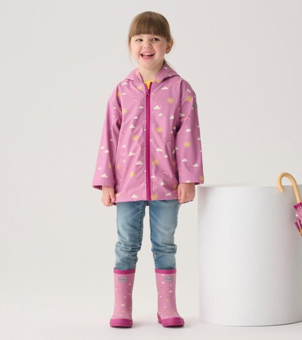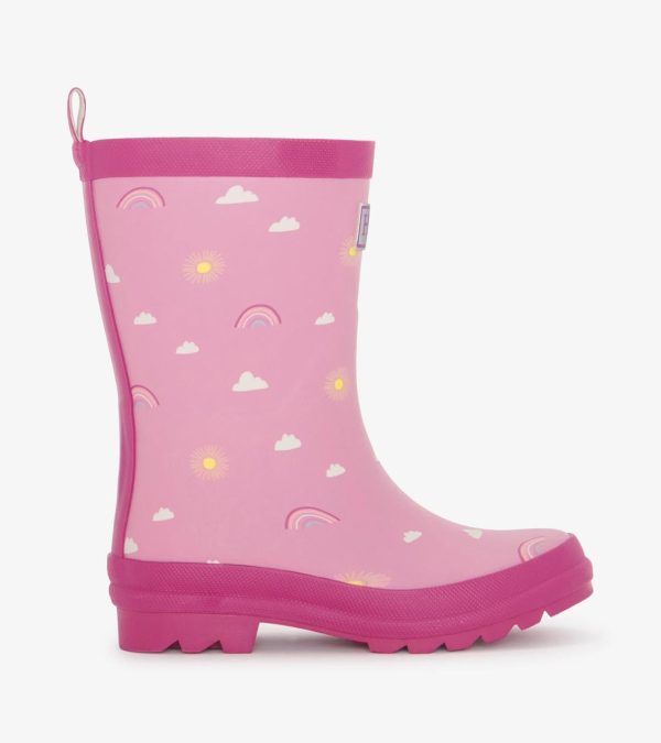 Brighten rainy days with the Girls Sun Charms Matte Rain Boots! These cheerful rubber boots feature a sunny design, perfect for keeping her feet dry while adding a touch of sunshine to wet weather.