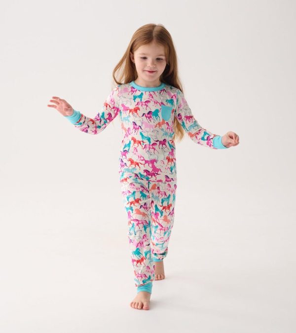 Gallop into bedtime with the Girls Pretty Horses Bamboo Pajama Set! This charming pajama set features a lovely horse pattern and a snug bamboo and elastane blend. Perfect for dreamy, comfortable nights.