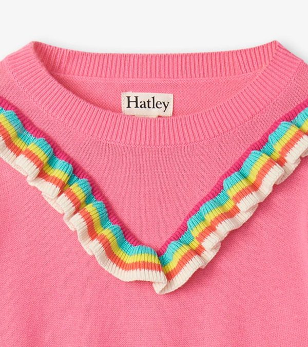 This super cute pink rainbow ruffle sweater is the perfect way to dress up on chilly fall and winter days! Your little one will love the cozy cotton fit and charming details made for birthday parties and special events!