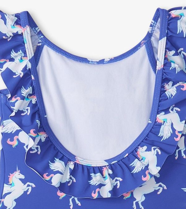 Add some mythical magic to swim time with our Girls Dazzling Unicorn Ruffle Sleeve Swimsuit. The combination of nylon and spandex provides a comfortable fit and will have your little girl feeling like she’s got wings in the water.