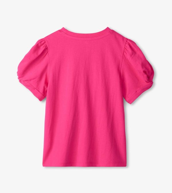 Our Girls Pink Twisted Sleeve Tee is a sweet twist on the classic tee. The cotton fabric offers breathability, while the twisted sleeve detail adds a playful touch to any outfit, perfect for picnics or playtime in the park.