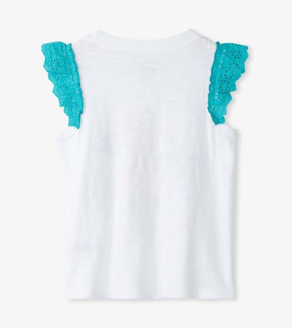 - Knit tank top with woven eyelet ruffle details