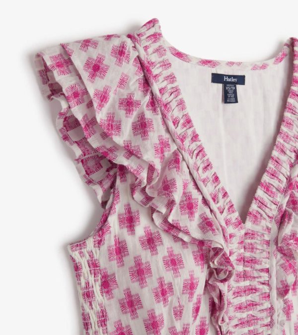 - Bodice side panels are finished with elastic smocking