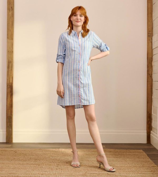 The Cara Shirt Dress in Light Blue Stripes is the perfect way to dress up during the chilly weather seasons! Made from cotton, this shirt dress style combines functionality with elegance and is easy to pair with tights and cute pair of booties, making it ideal for office wear and weekend outings.