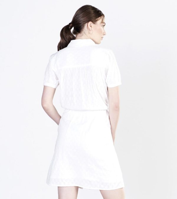This charming one-and-done shirt dress has a few special details you wouldn’t want to overlook—like the V neckline, the elasticated waist and front ties for a feminine and flattering finish. It’s also crafted from a hand-loomed cotton with a micro eyelet pattern.