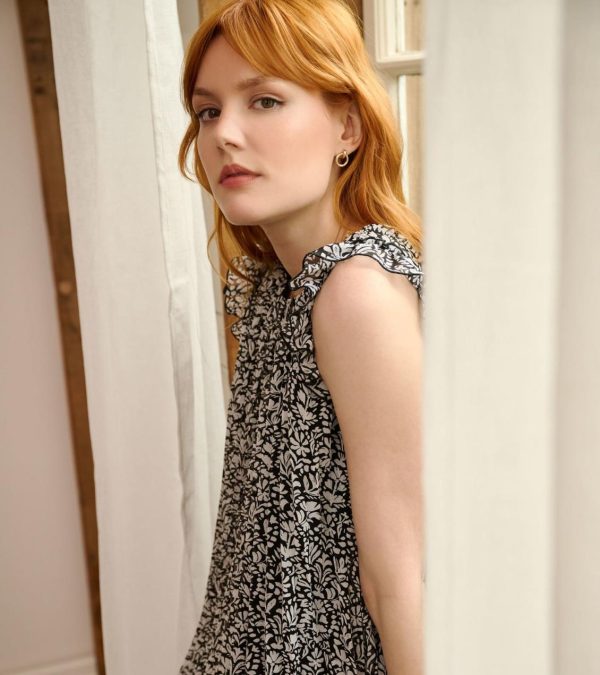 - Pleated flutter sleeve dress