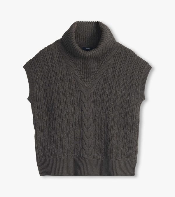 - Cowl neck cable knit sweater vest