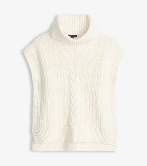 This winter white cable knit vest is a cozy blend of cotton and acrylic, providing both warmth and style. The classic cable knit pattern adds texture and interest, making it a versatile layering piece for cooler days. Perfect for pairing with blouses or long-sleeve tops.