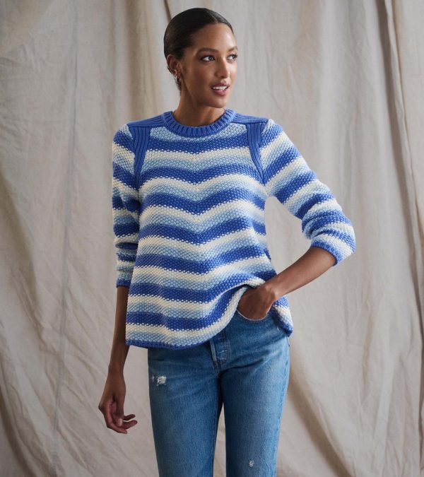 In a rich navy blue, the Chevron Swing Sweater combines the comfort of cotton with the warmth of acrylic. The chevron pattern adds a stylish twist, while the swing silhouette ensures a flattering and easy fit. Ideal for casual outings or cozy days at home.