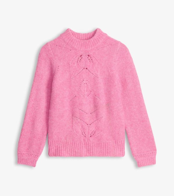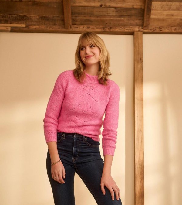 - Long set-in sleeves, single set-In 1×1 rib cuffs with pointelle details towards cuff seam