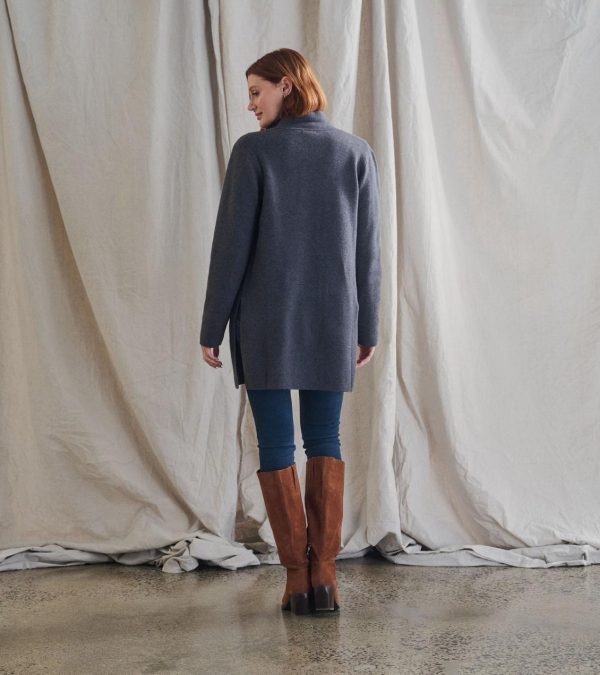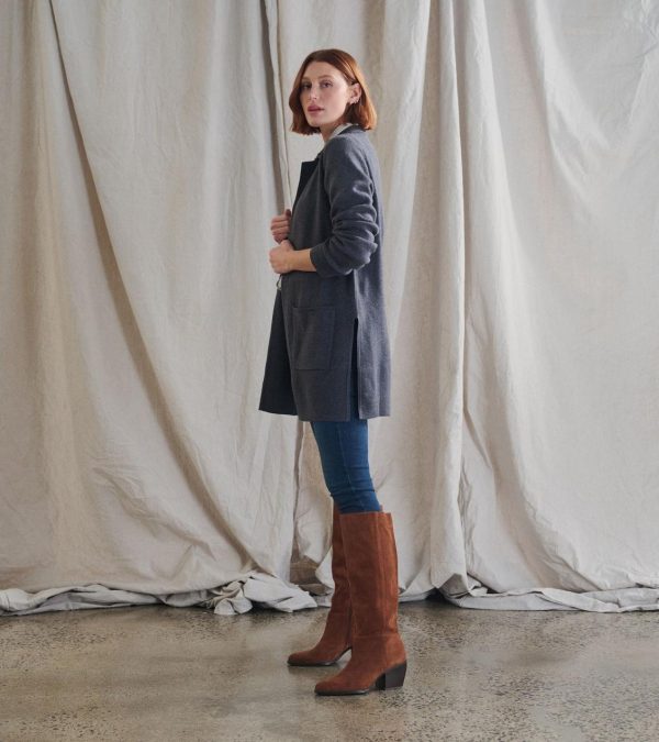 The sweater blazer in charcoal grey is a sophisticated blend of acrylic and nylon, offering the perfect mix of structure and softness. The tailored silhouette and versatile color make it an essential piece for both work and casual wear. Layer it over your favorite tops for an effortlessly polished look.
